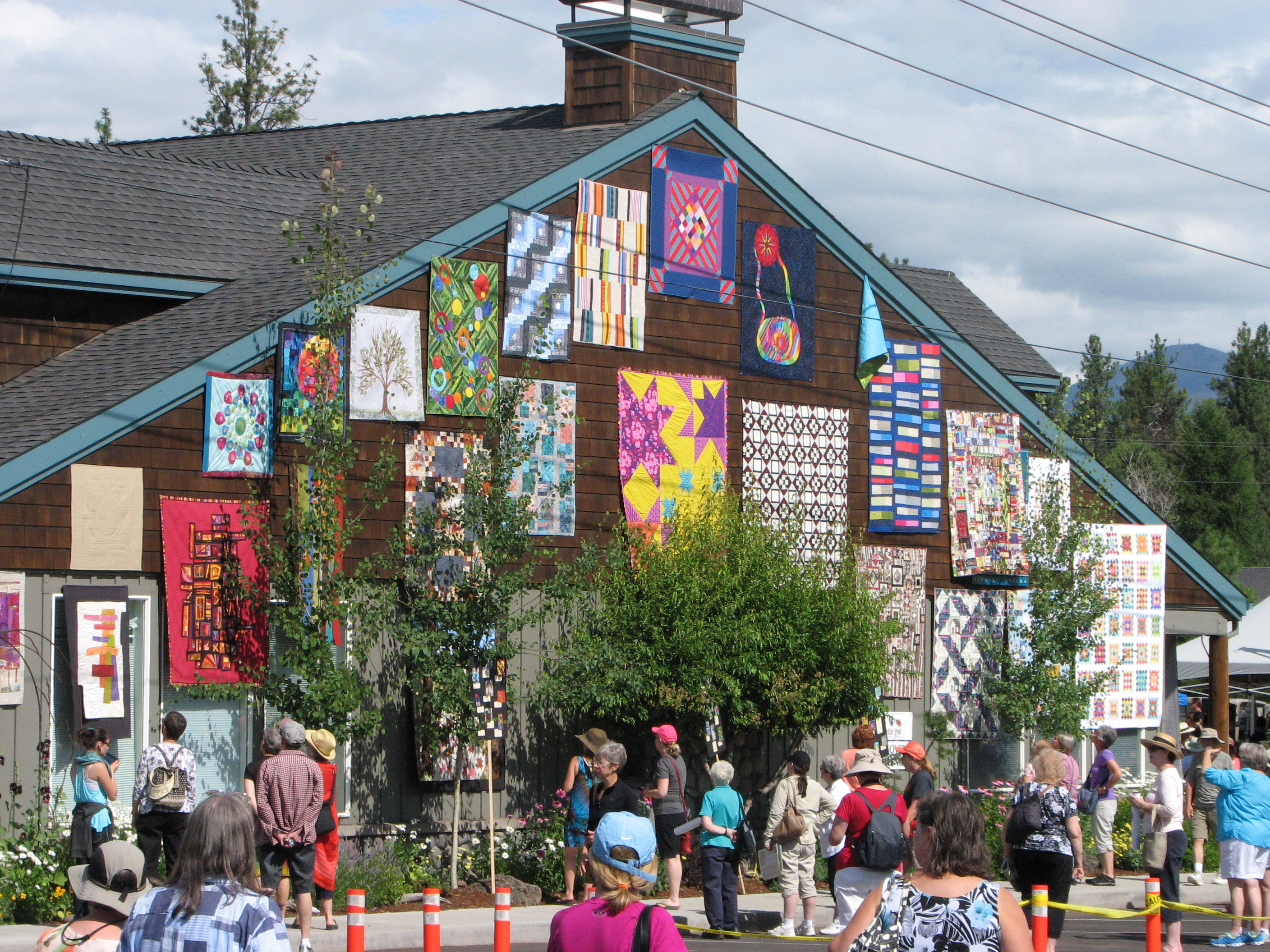 Last weekend DH and I made a last minute trip to Oregon for the Sisters Outdoor Quilt Show. We certainly didn’t over think this trip – we made a hotel reservation the Monday before show and set off with vague plans. The only concrete item on the itinerary was to see the show on Saturday. The Sisters show has long been on my list of shows to see and this year, finally, the second Saturday in July was free and clear.